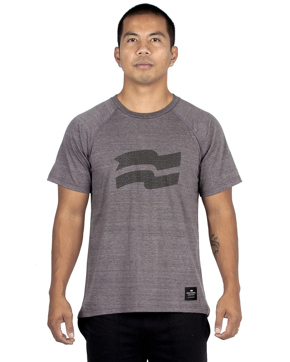 Traditional raglan athletic cut tee with enhanced mobility through the shoulders.