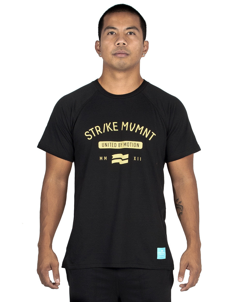 "United by Motion" woven label